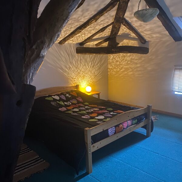 3-La chambre Daho, tout en haut, au 2éme étage , 4 pers. Maxi, 1 lit de 140 + 1 de 90, ainsi que d'une petite pièce "indépendante" où se trouve un lit de 90salle d'eau, WC privée